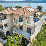 Blue Symphony Suites And Apartments Nikiana, som ligger inom 8 minuters promenad från Episkopos strand, har balkong med utsikt över trädgården. Gästerna kan koppla av vid en infinity-pool innan de tar ett svalkande dopp.
